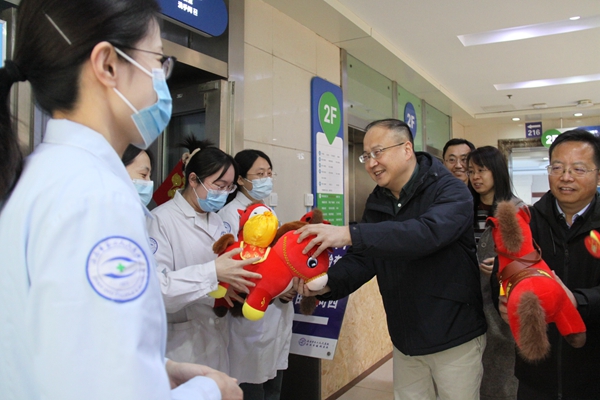 2月17日,农历大年初一,市卫生健康委领导分组带队到委属医疗卫生机构开展春节走访慰问和督导检查活动,向春节期间坚守岗位的一线工作人员致以节日的问候和新春的祝福。