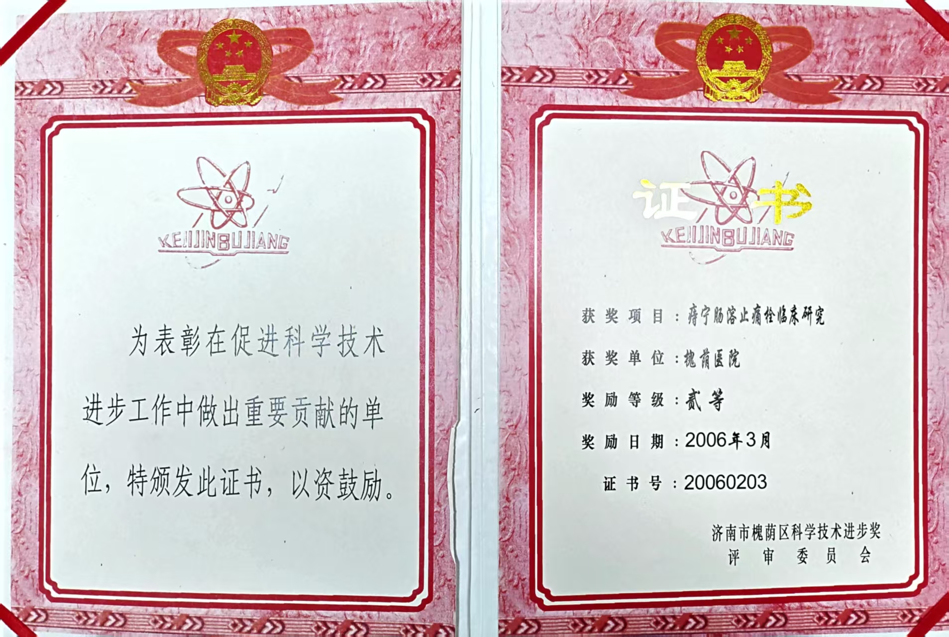 通过济南市科技局成果鉴定:设计合理、资料准确,已达到国内领先水平。获济南市科学技术进步二等奖。